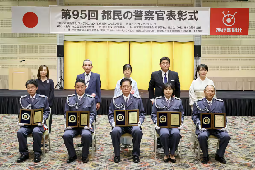 毎年、多くの推薦者の中から、警視庁OBや協賛社・団体、産経新聞社で構成される選考委員会が、功績・人格ともに優れたベテラン警察官5名を選定します。夏季に行われる表彰式では、受章者に純銀製の「都民の警察官章」が贈られるとともに、過酷な職務を長年献身的に支えてこられたご家族の皆様も、共にステージで表彰します。現場の警察官にとって、本賞は最大級の栄誉であり、日々の活動の大きな目標となっています。