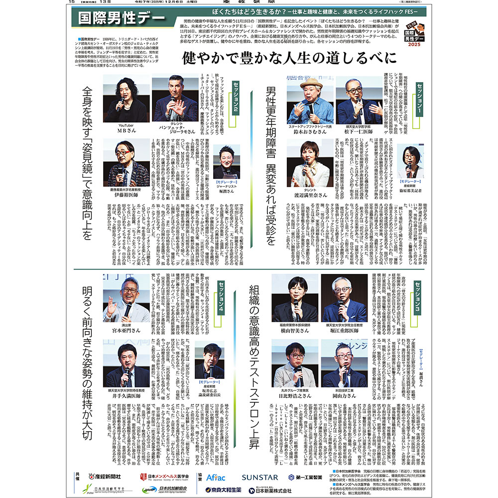 産経新聞社は、日本メンズヘルス医学会、日本抗加齢医学会、日本抗加齢協会との共催で、11月19日の「国際男性デー」に合わせたイベントを開催し、盛況のうちに終了しました。