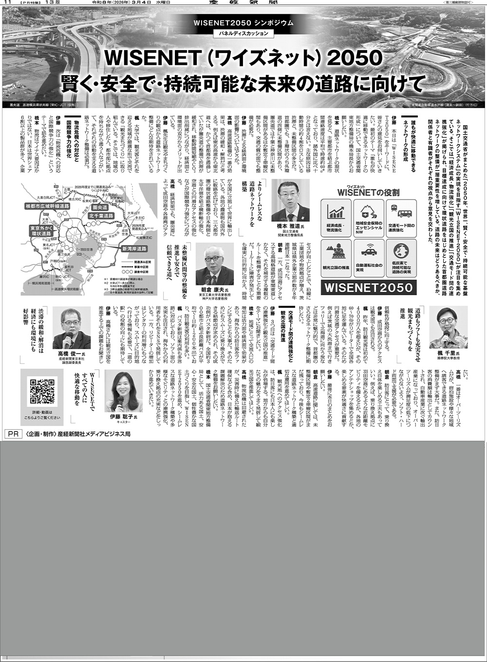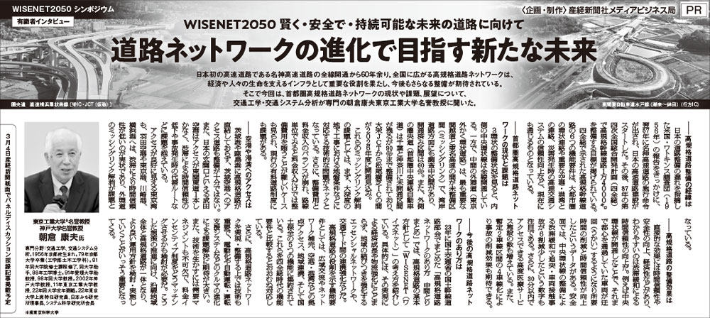国土交通省がまとめた「2050年、世界一、賢く、安全で、持続可能な基盤ネットワーク」の実現を目指す「WISENET2050」のシンポジウムを開催しました。